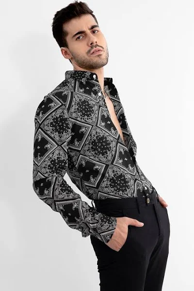 Snitch Men’s Mandala Print Black Shirt