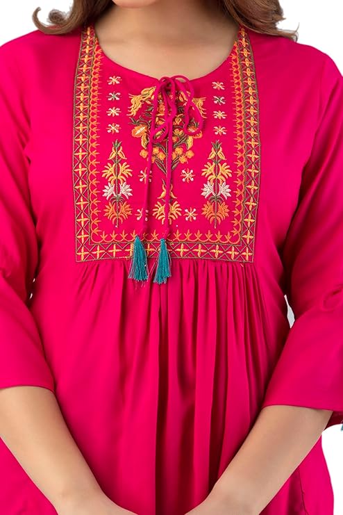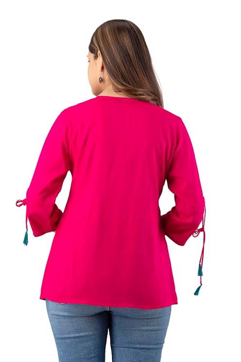 & Free ShippingWomen’s Rayon Classic Heavy Embroidery Top with Beautifull Tassels at Front and on Both Sleeves